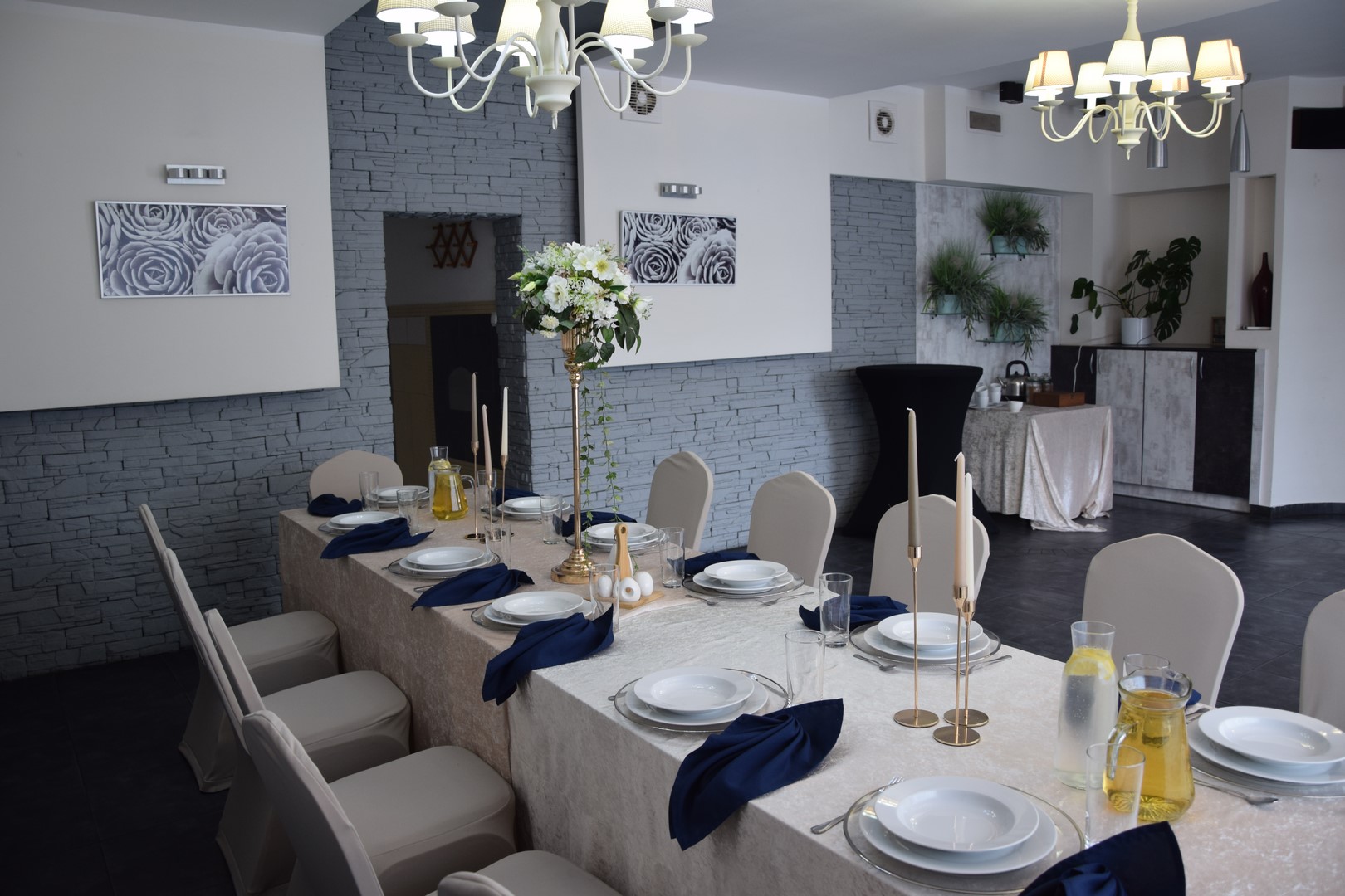 Nasze sale powstały z myślą o stworzeniu komfortowego i eleganckiego charakteru wnętrz do spotkań rodzinnych, organizacji zarówno imprez okolicznościowych jak i spotkań biznesowych, konferencji czy szkoleń. Sale w pięknym stylu są klimatyzowane, z grą świateł i wbudowanym barem do Państwa dyspozycji. Duża sala mieści do 60 osób, natomiast mała do 20 osób.